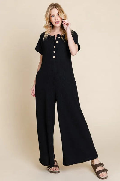 BOMBOM Rib Knit Jumpsuit with Button Detail