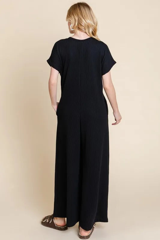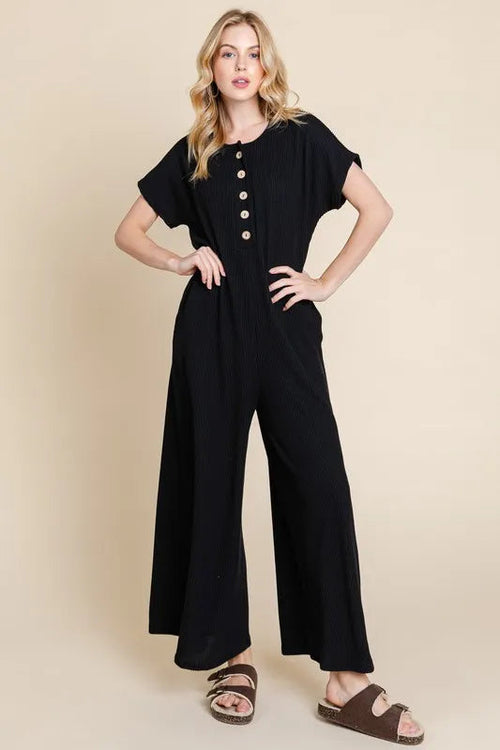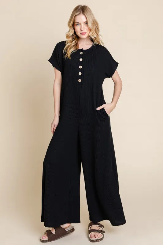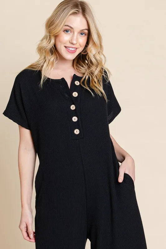 BOMBOM Rib Knit Jumpsuit with Button Detail